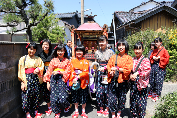 乙女神輿は中学生も参加。