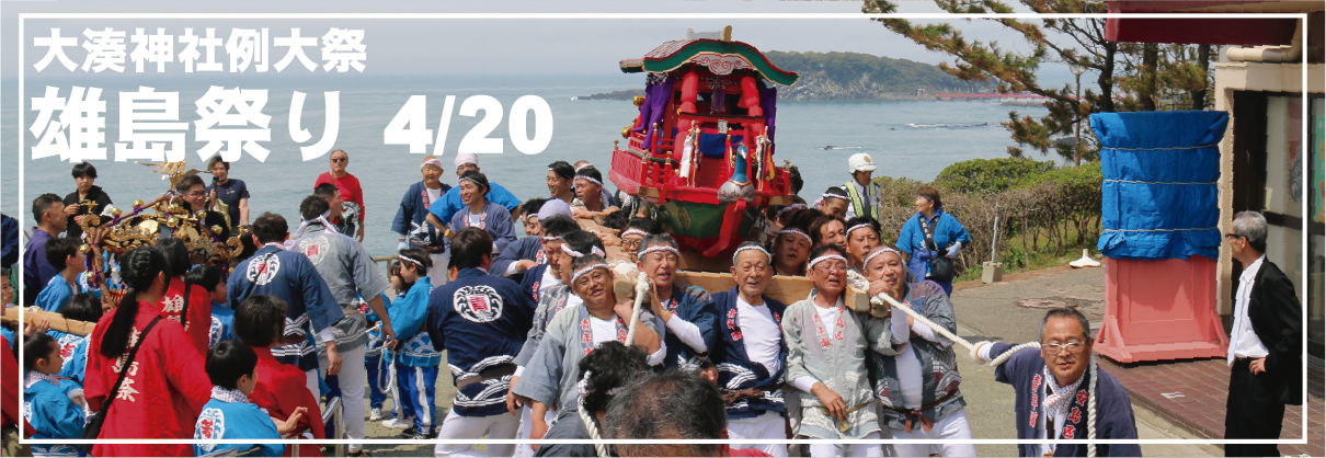 【令和7年3月19~21日】 神幸祭(お獅子祭り) 【令和7年4月19日】 和布献供祭 【令和7年4月20日】 大湊神社例大祭 【令和7年5月3~5日】 椿祭り