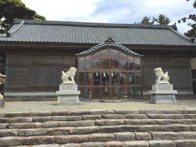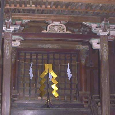 桁行1.8メートル、梁間1.5メートル、の一重入母屋造りで銅板葺の床板張りに造られている。本殿と同時に元和七年(1621)藩主忠直公の造営で、その正面の蟇股や柱には桃山風の様式をとどめている。屋根の勾配は急で、軒の出が浅く、北陸漁村特有の季節風から建物を防ぐため漁家の建築構造を取り入れている。