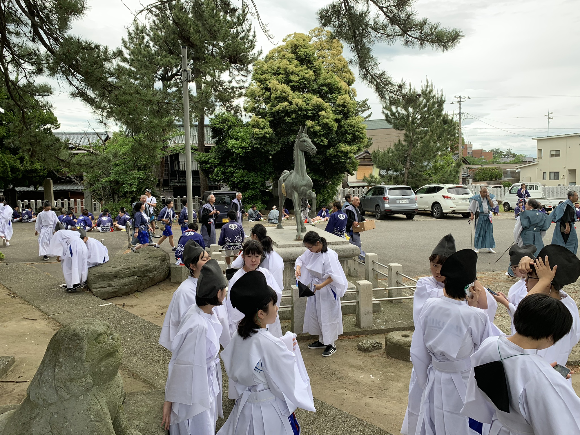 5月20日の三国祭りで、行列の人も休憩します。