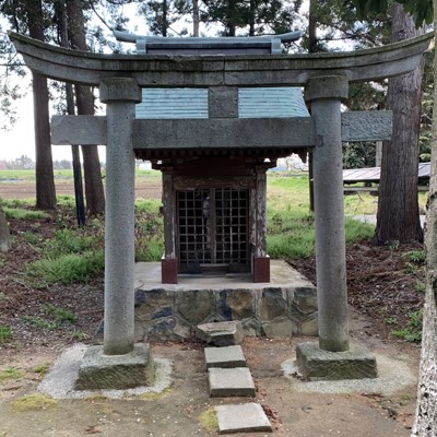 雨岡神社の入り口の右手にある祠に、鎌倉時代末期の作と推定される石仏が安置されています。